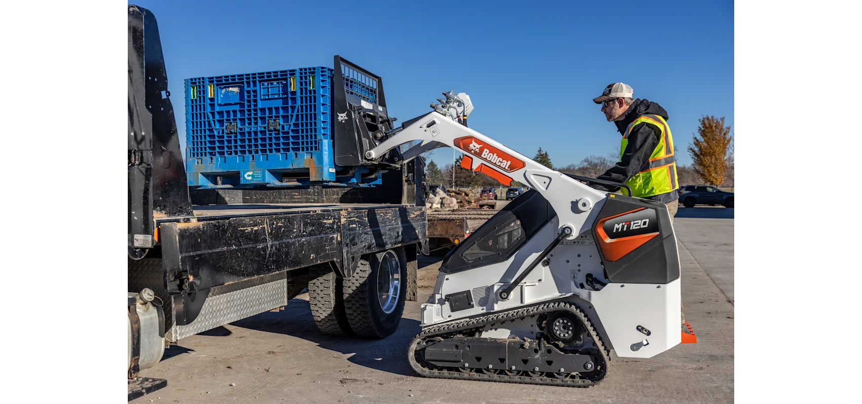 The Bobcat MT120 mini track loader leads its class in lift height and reach, delivering heavy-lifting performance and high value with low overall cost of ownership.